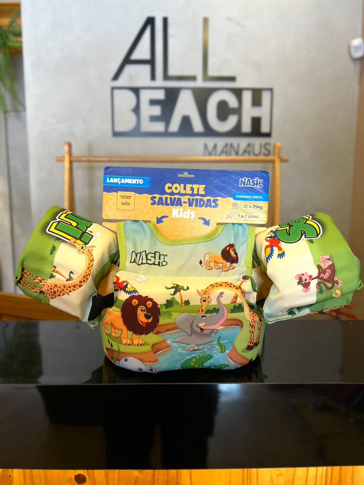 A boia com colete salva-vidas infantil da marca Nash é um equipamento de flutuação projetado especialmente para crianças brincarem com mais segurança na água — seja na piscina, praia ou lago.