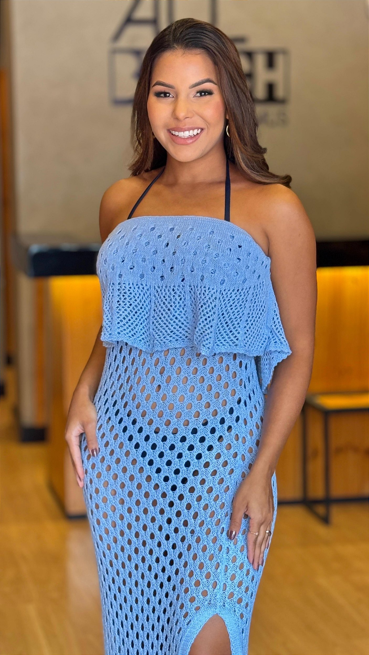 A Saída Longa em Tricô combina elegância e leveza em uma peça que transforma qualquer look de praia. Com caimento fluido e trama delicada, ela cria uma transparência charmosa na medida certa, alongando a silhueta e trazendo movimento ao visual.